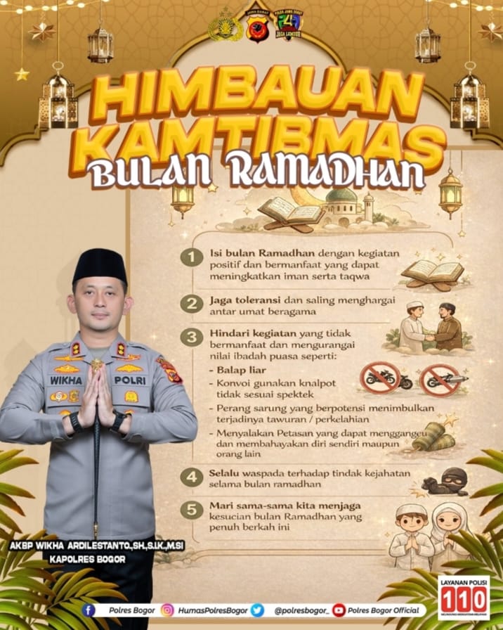 Untuk Semua Warga Kabupaten Bogor yang luas Berada di 40 Kecamatan, Dihimbau untuk Tertib dan Menjaga di Bulan Suci Ramadhan Agar Tetap :