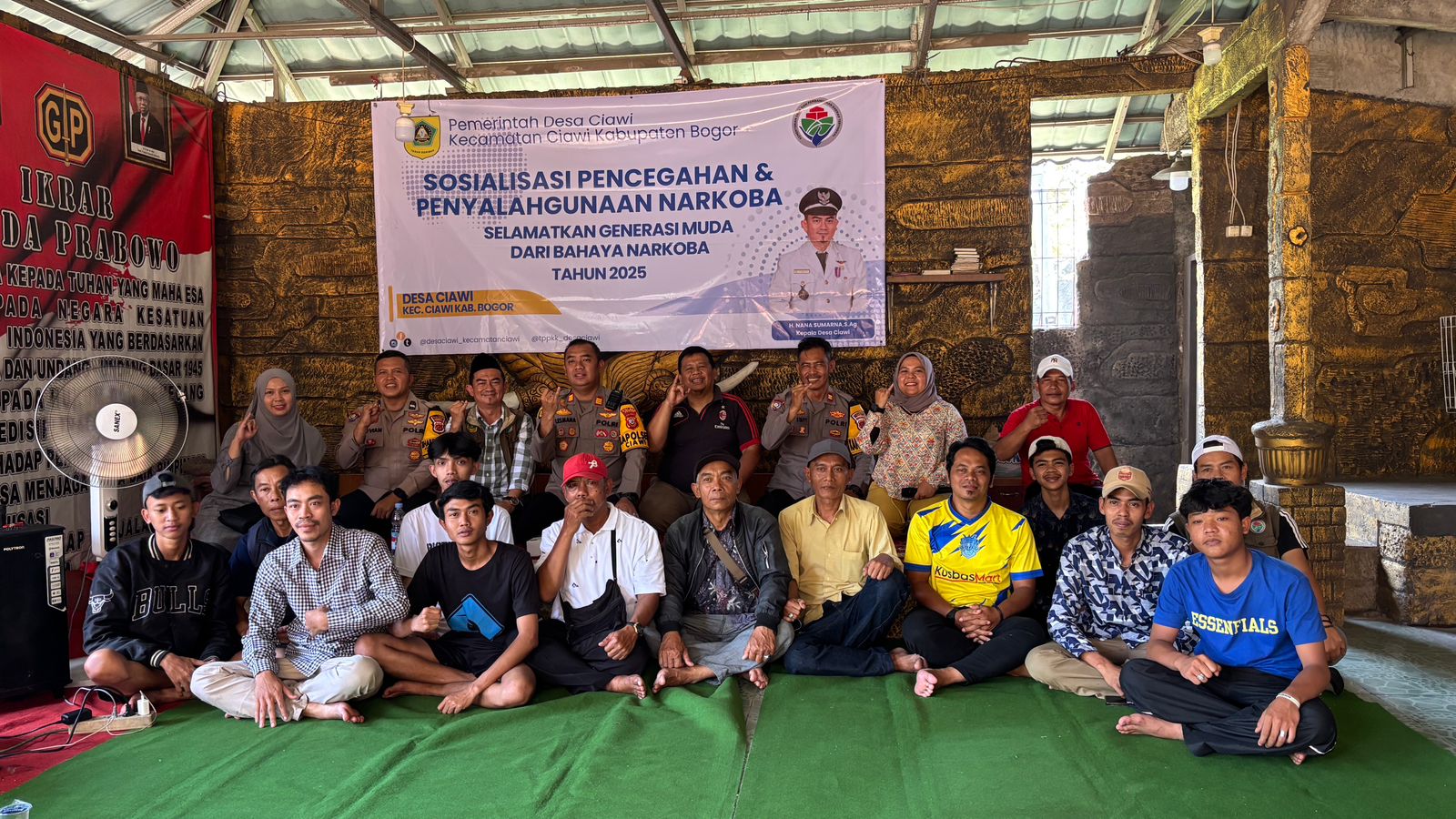 Sebagai bentuk pencegahan dan edukasi kepada warga, Kapolsek Ciawi AKP Dede Lesmana Jaya, S.H., M.H. bersama Kanit Binmas Polsek Ciawi Iptu Agus Syafi’i dan Bhabinkamtibmas Desa Ciawi Aipda Herman Sovian melaksanakan kegiatan himbauan dan penyuluhan pencegahan penyalahgunaan narkoba. Kegiatan berlangsung di Aula Padepokan Jalak Banten, Kampung Tipar RT 02/04, Desa Ciawi, Kecamatan Ciawi, Kabupaten Bogor, pada Sabtu (4/10/2025).