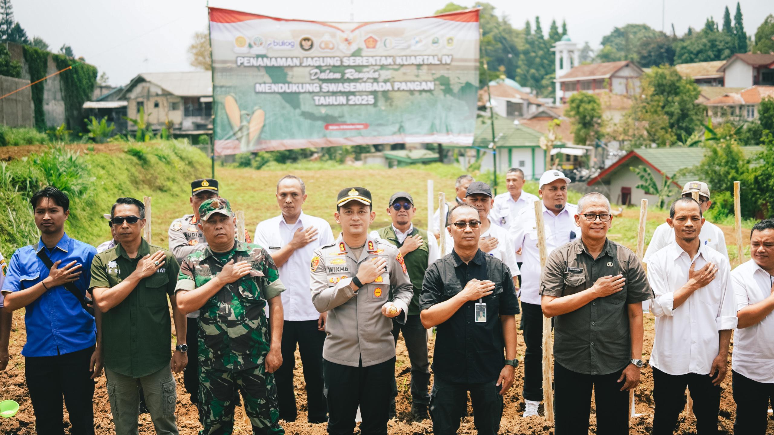 POLRES BOGOR – GERBANG WARTA INDONESIA // Dalam rangka mendukung Program Polri untuk Ketahanan Pangan Nasional, Polres Bogor melaksanakan kegiatan Penanaman Jagung Serentak Kuartal IV pada Rabu (8/10/2025). Kegiatan ini dilaksanakan secara serentak oleh Polda jajaran melalui sarana Zoom Meeting, dan untuk wilayah Kabupaten Bogor dipusatkan di Kampung Sukamulya, Desa Kopo, Kecamatan Cisarua, Kabupaten Bogor.