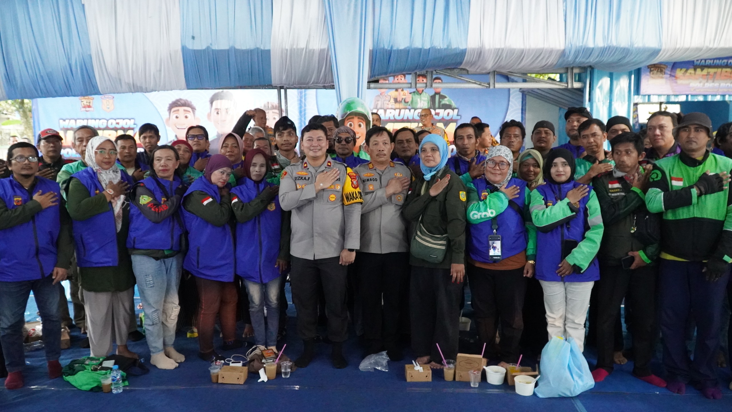 Sebagai bentuk dukungan kepada mitra ojol kamtibmas, dilakukan penyerahan rompi, pin keselamatan berlalu lintas, helm, dan paket sembako secara simbolis kepada empat orang perwakilan. Kegiatan kemudian dilanjutkan dengan peninjauan booth Warung Ojol dan Bengkel Kamtibmas, ramah tamah, serta makan bersama.